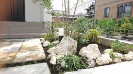 自然石と植栽が柔らかい優しい空間を造り出してくれています。