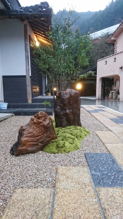 佐用町庭|木化石と苔のコントラストを感じられる癒しの庭