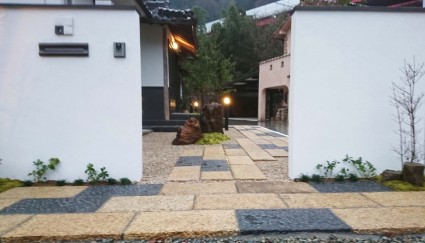 御影石の石畳アプローチ