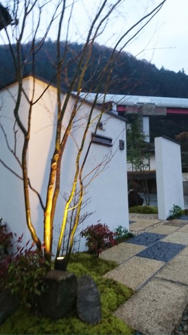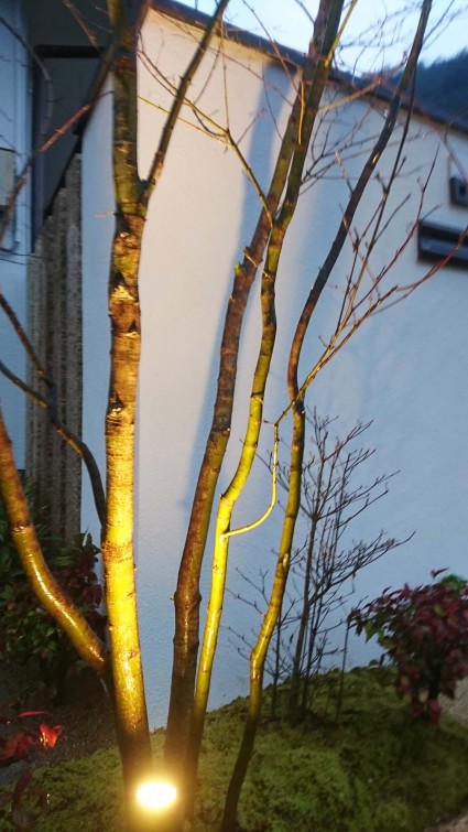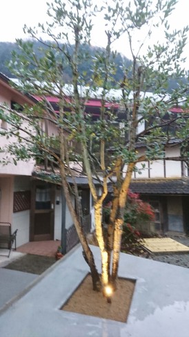 夜は幻想的な中庭で癒しの空間です。