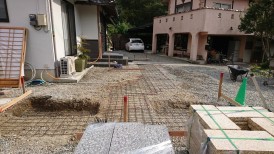 鉄筋を入れて基礎コンクリート