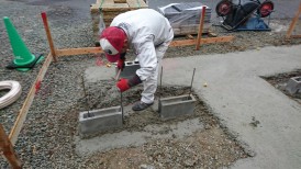 基礎コンクリートの上に門柱