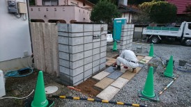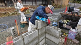 塗り壁下地のブロックを積みます。