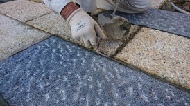 石と石の隙間に目地を入れて