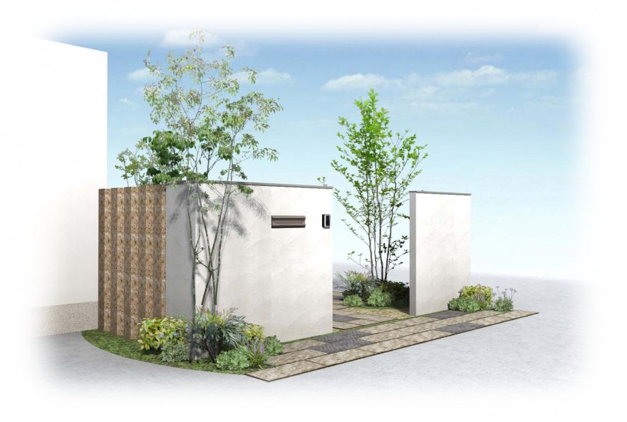 門柱のコーナー部分をシンボルツリーで緩和役。