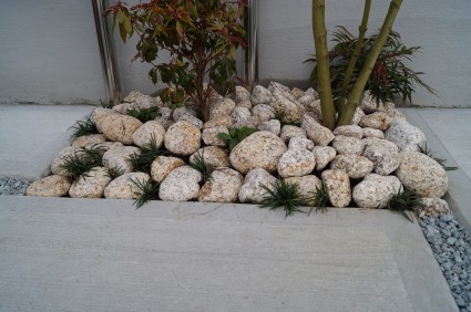 ゴロタ石でアレンジしたロックガーデン。