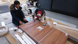 表札を慎重に取り付けていきます。