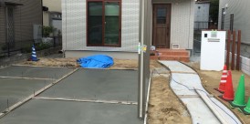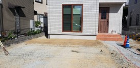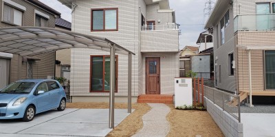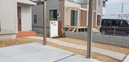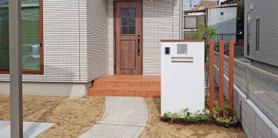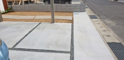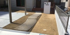 HOME外構・エクステリア・お庭の施工事例新築外構 > 姫路サンガーデンが造る新築外構|一条工務店の外構アプローチは曲線ラインが美しい洗出し仕上げ