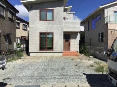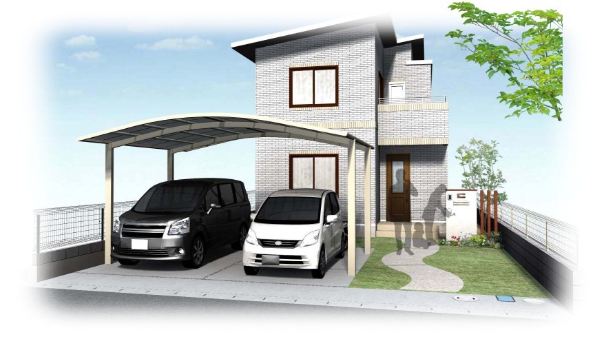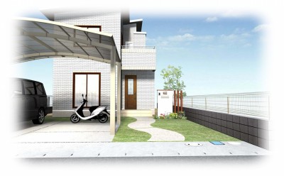 駐車が苦手な女性の方もやさしい駐車場デザインです。