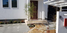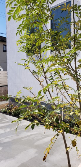玄関先を道路からさりげなく目隠し役はシンボルツリーの
