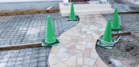 曲線ラインで可愛らしさも入れた来客用駐車場です。