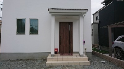 ・ 門柱は白系とウッド調(玄関ドアに合わせて)を入れて欲しい。