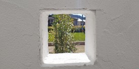 門柱にもキューブ型のクリヌキ小窓を入れた