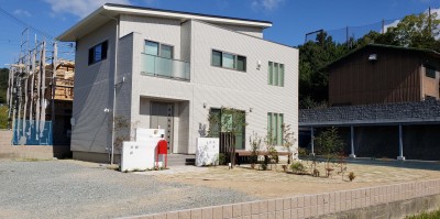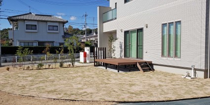 相生市で広い芝生のお庭と緑あふれる素敵な外構が完成しました。