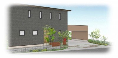 宍粟市山崎町新築外構イメージパース