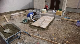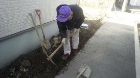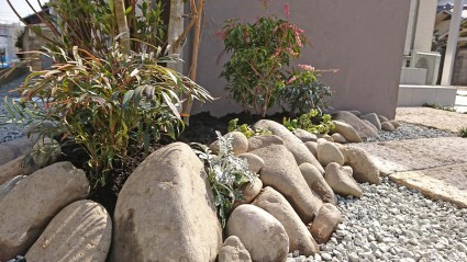 姫路市外構|地面から出てきた川石を再利用したモダン外構