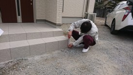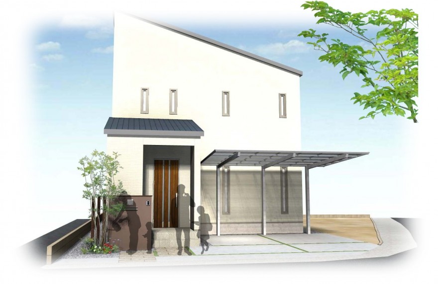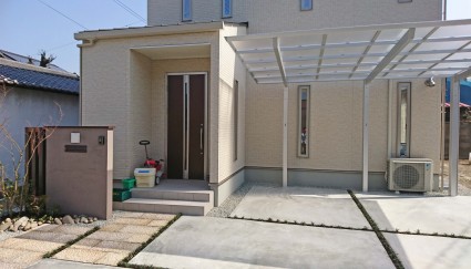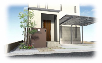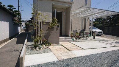 前面道路が狭く道路後退(セットバック)した外構エクステリアの完成です。