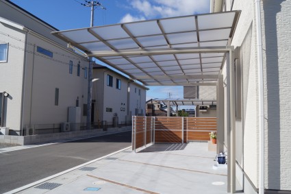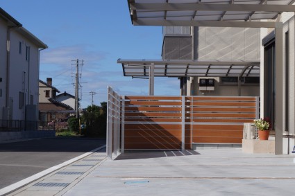 フラットの屋根がスッキリとした印象で奥の木目調のフェンスとも相性バッチリです。