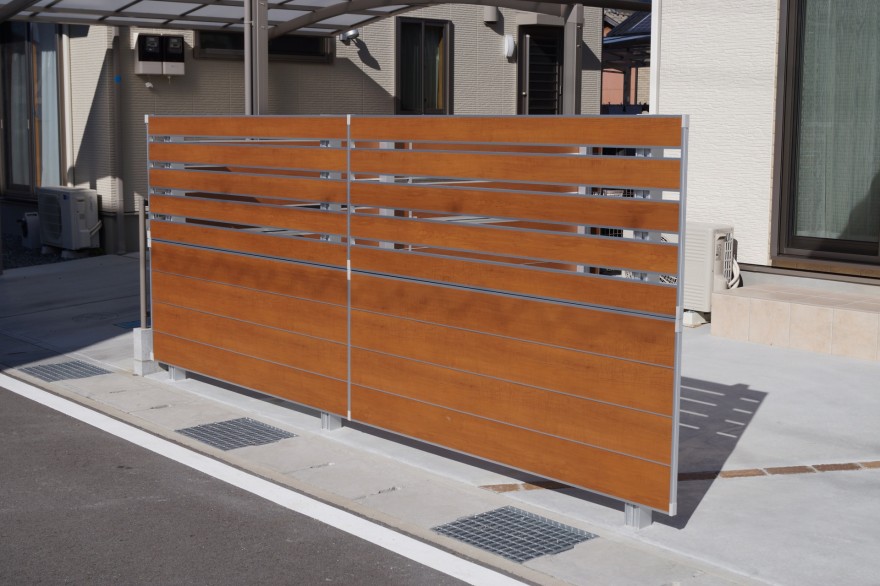 和室前の目隠しフェンスはアルミだと冷たく感じてしまうので、木目調のフェンスで温かみを感じられるようにしました。