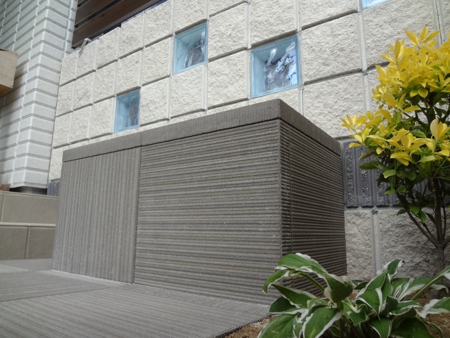 圧迫感を感じないようにガラスブロックを入れてモダンにデザインしています。