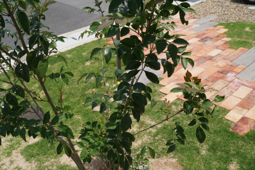 丸みを帯びた小さい葉がかわいらしく濃いグリーンが建物を引き立ててくれます。