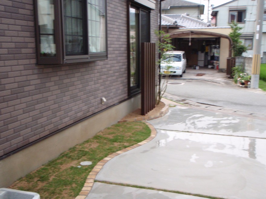 少しでも緑のスペースが欲しとのことでしたので車の乗り降りに支障がないぎりぎりまで芝生を植えました。