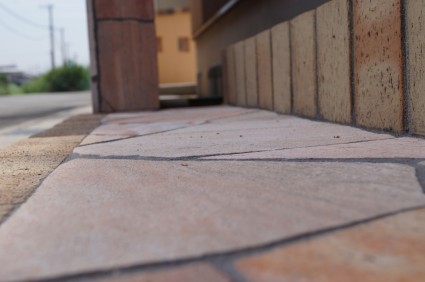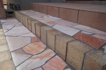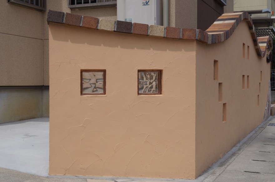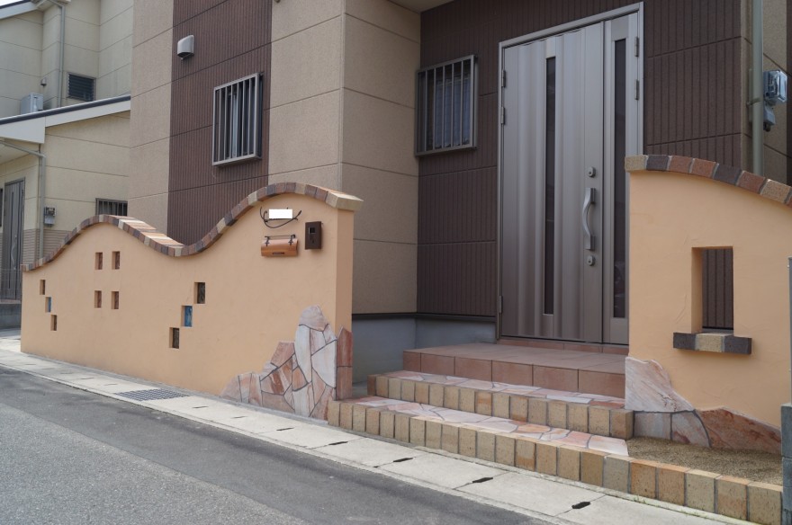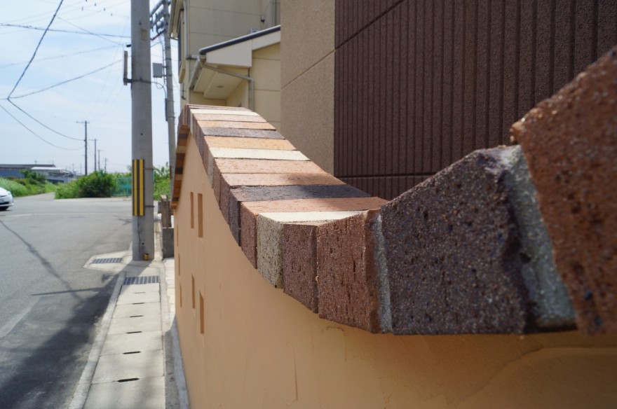 笠木に使用した三色のレンガが個性的で明るい印象になりました。