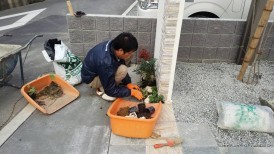 門柱前の植栽工事