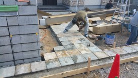 アプローチの石貼りの下地コン。