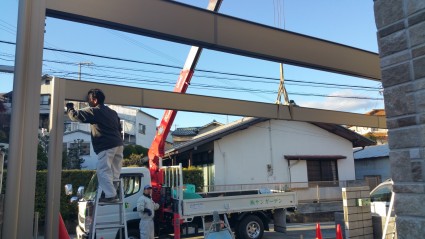 梁置きタイプのカーポートUスタイルです。