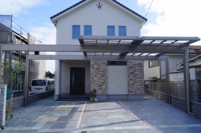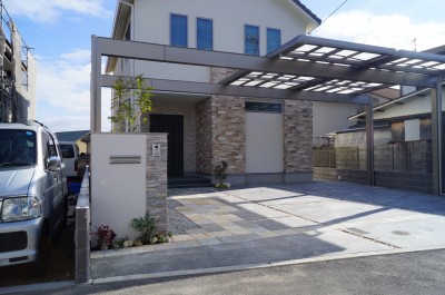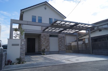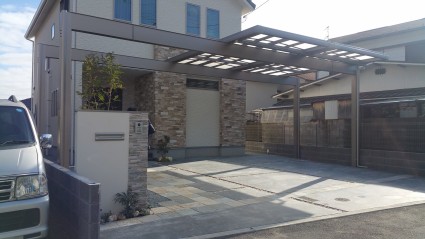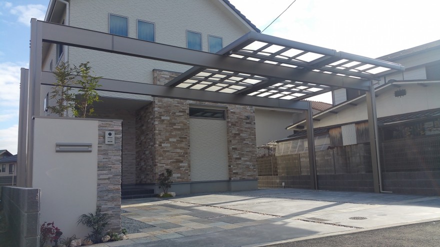 Uスタイルで迫力あるカーポート 姫路市 将来の事も考えた駐車場計画