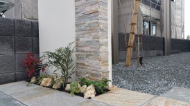 スマートな門柱ですが,石張りでエレガントな印象になりました。