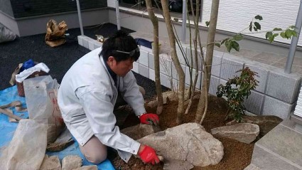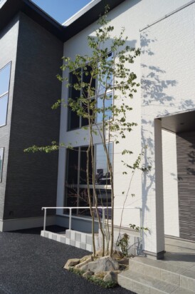 姫路市植栽工事|自然樹形の美しい雑木をシンボルツリーにした事務所の庭