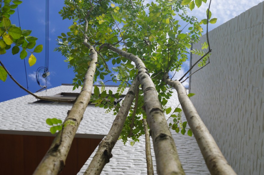 株立ちの4mは超える立派なシンボルツリーで、白い建物に良く似合います。