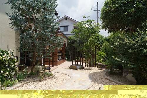 落葉樹なので夏は陰を作り冬場は日差しが入るような植栽です。