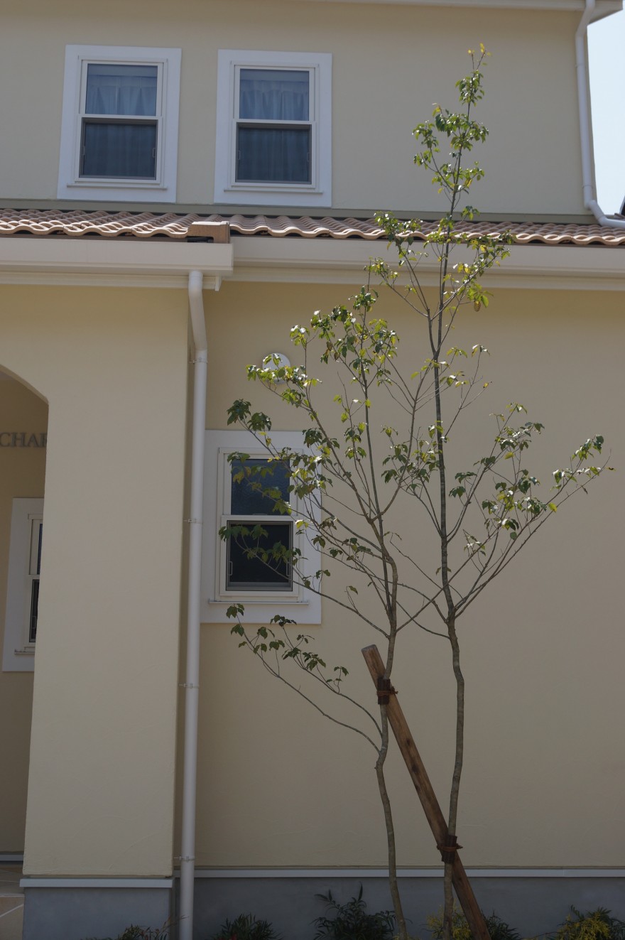 やわらかい印象の葉っぱは家の塗り壁によく映えます。