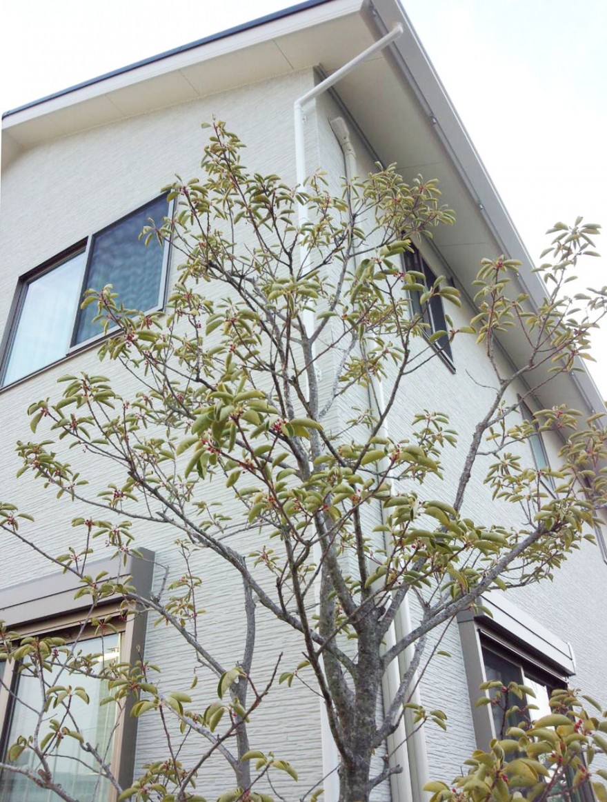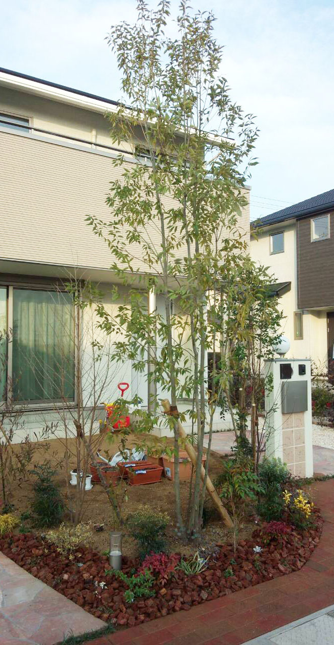 シンボルツリーの両サイドは中木をエゴノキやヤマボウシポップブッシュなどを植栽し