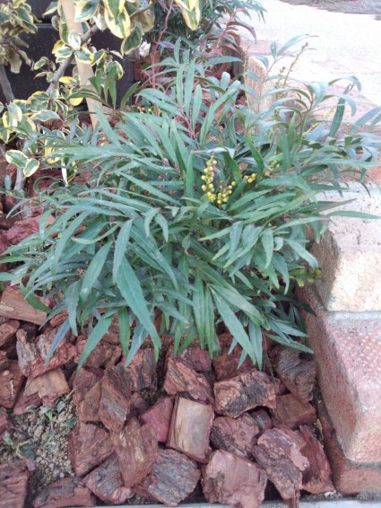 マホニアコンフーサやオカメナンテンフィリフィアオーレアなどを植えてマルチングして保護しています。
