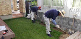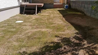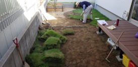 外構お庭の一期工事で芝生張りのお庭。