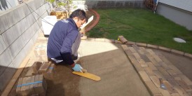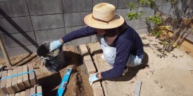 下地を作りながらレンガを敷き詰めて