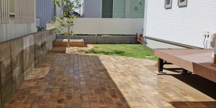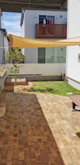 姫路市庭工事|レンガ敷きのガーデンテラスで遊べるお庭