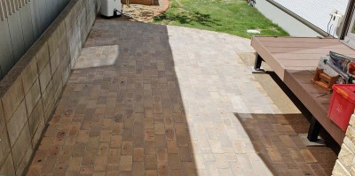 オシャレなレンガ敷きのガーデンテラスが完成しました。