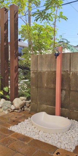 白玉石を敷いてオシャレな立水栓です。