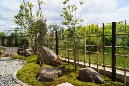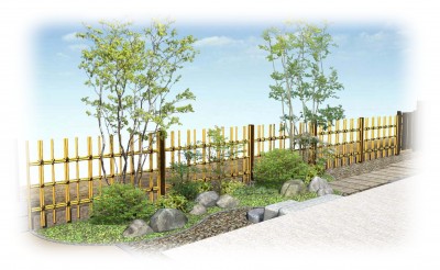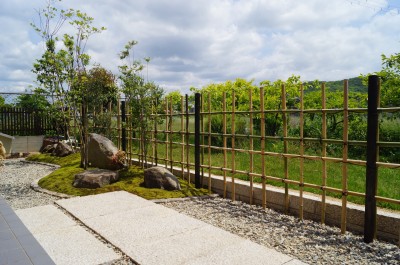 天然竹で作った四ツ目垣は程よい抜け感があり