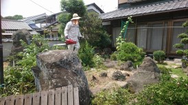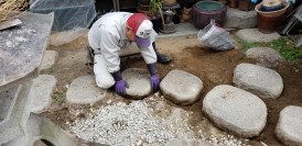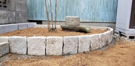 ガーデンリフォームの為に庭石や灯篭、水鉢、飛石を
