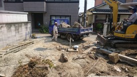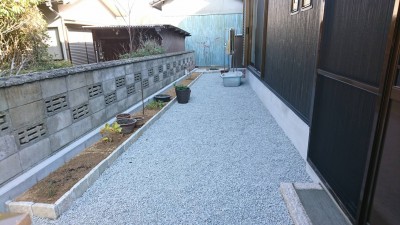 全面砕石敷のスッキリと綺麗な裏庭になりました。