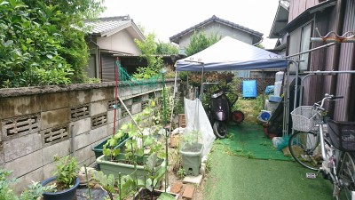 庭木が生い茂り鬱陶しさも感じるお庭。