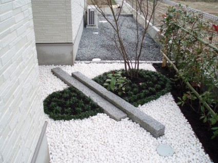 HOME外構・エクステリア・お庭の施工事例トータルデザイン > 白玉石で白を基調とした高級感あふれるアプローチ市川町 I様邸 非公開