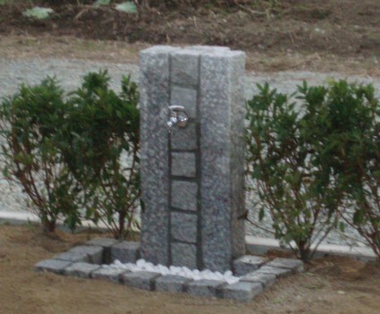 全体のバランスを考えノベ石を両方に立込み中にピンコロを積上げモダンスタイルの立錐水です。