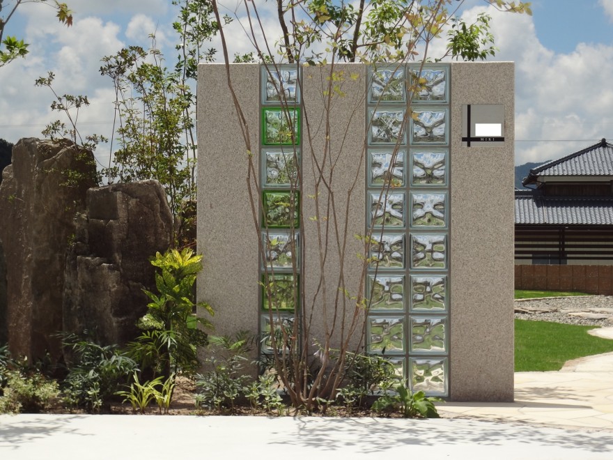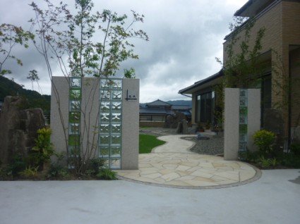 ガラスブロックと御影石の門柱に雑木の庭 神崎郡神川町M様邸